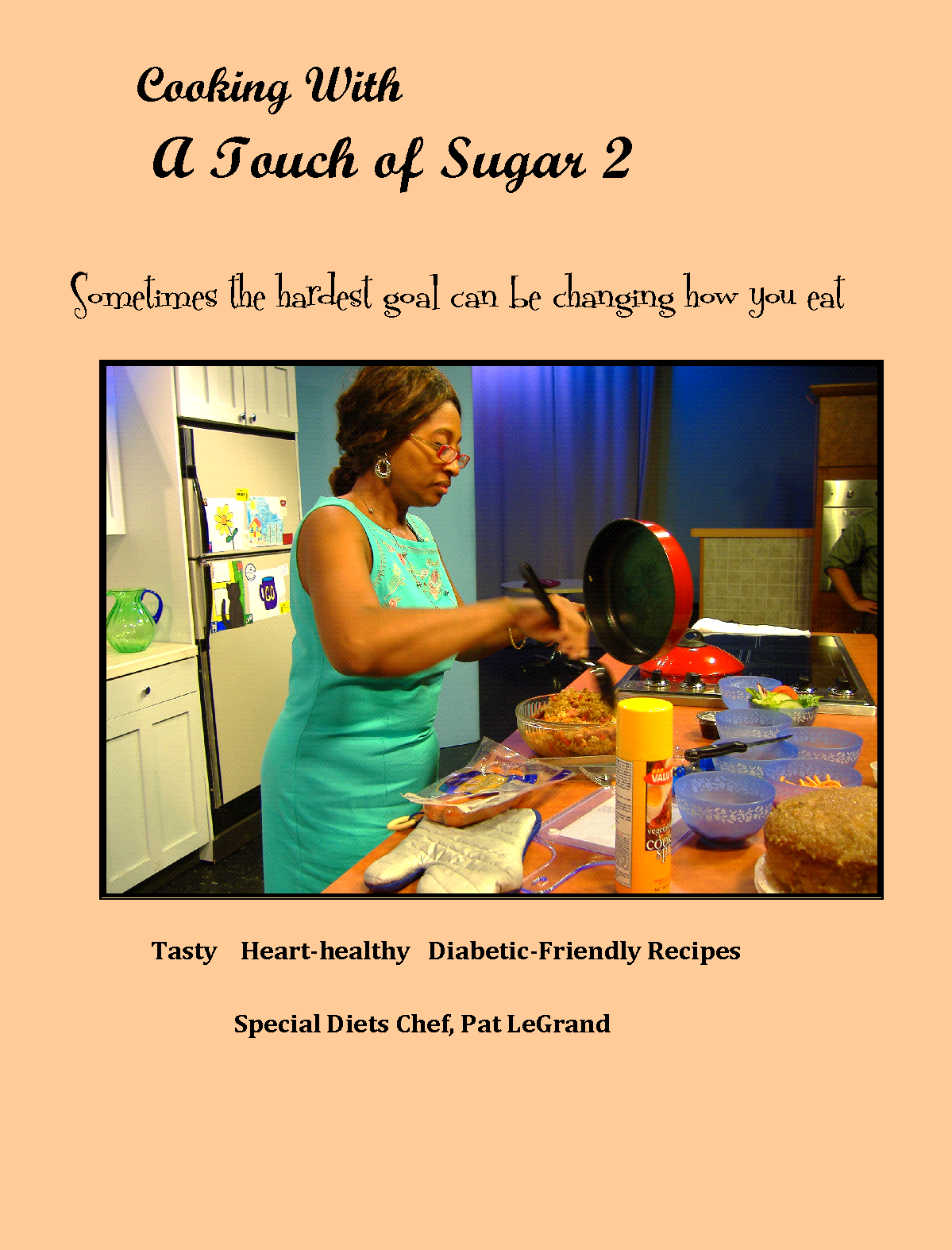 Our original cookbook 52 page cookbook with our recipes that were featured on the Food Network.Recommended for persons just learning to cook more healthful foods and desserts. These recipes will give you a strong basic foundation and knowledge of healthful cooking practices. Includes oven-fried chicken, macaroni and cheese and cheesecake. Using easy to find, familiar ingredients found at your local grocery store you will make your own home-made seasonings, salad dressings, desserts, meats and appetizers.